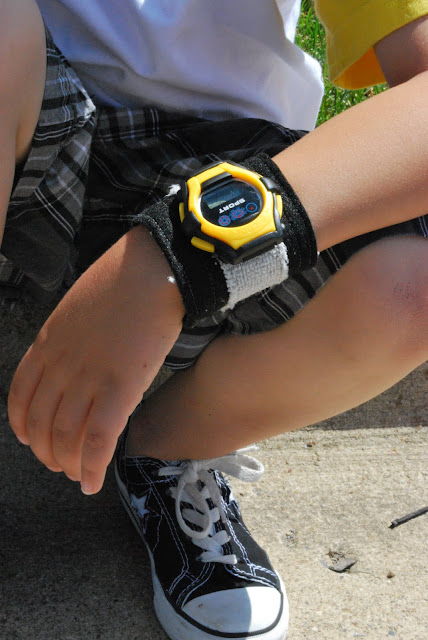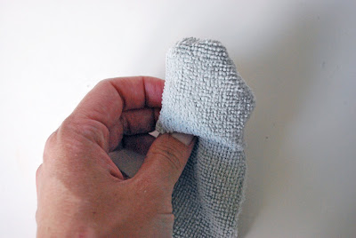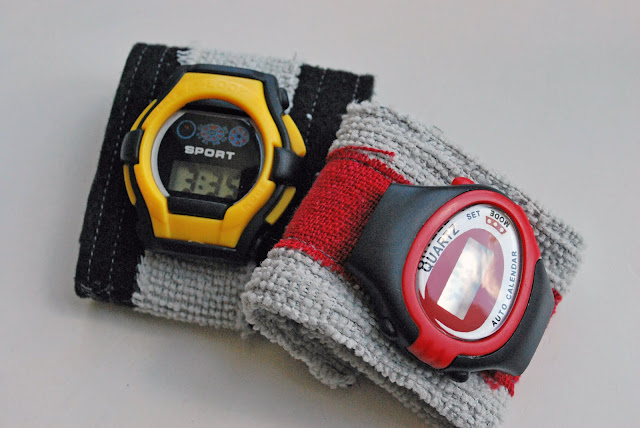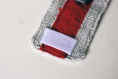 Medida de la muñeca sirve poco asegurándose de dar cuenta de solapamiento de las bandas de velcro que juntos, agregue 1 / 2 pulgada. Corte dos tiras de la tela gris (cualquier shammie) la longitud que mide 2 1 / 2 pulgadas de ancho.