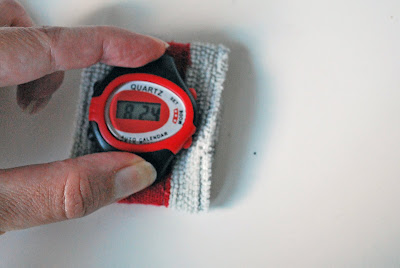 Después de encontrar el centro de su puño, coloque la cara del reloj hay y presione firmemente.