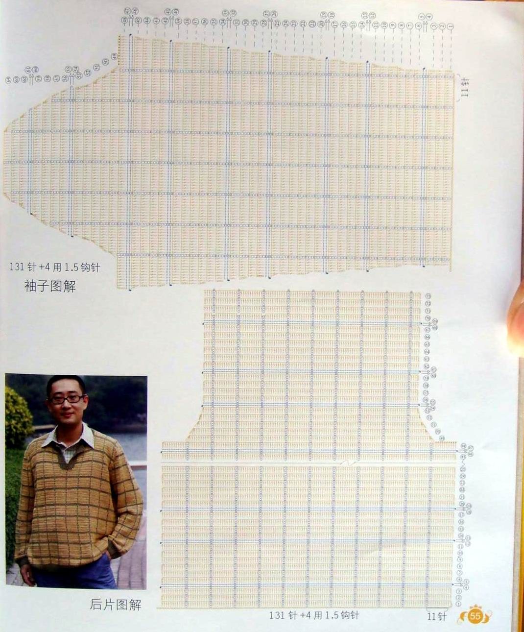 Blusa de los hombres de ganchillo