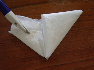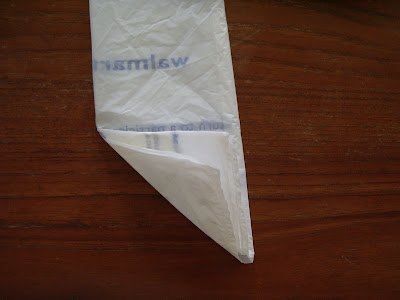 Comience en el extremo inferior de la bolsa. Dobla una esquina. Si la parte doblada parece a un triángulo, estás en el buen camino.