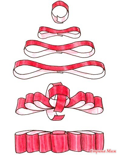 Pegue los "anillos" de piezas de diferente longitud de la cinta que luego se conectan entre sí con pegamento o grapas.