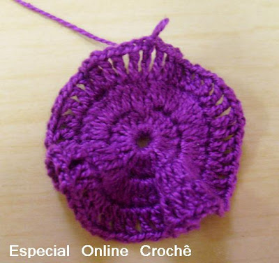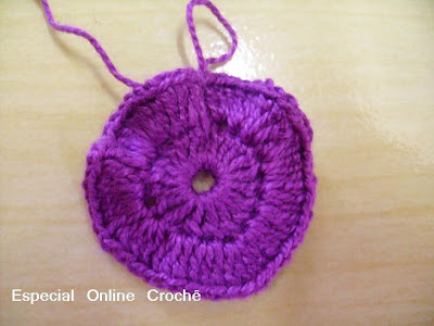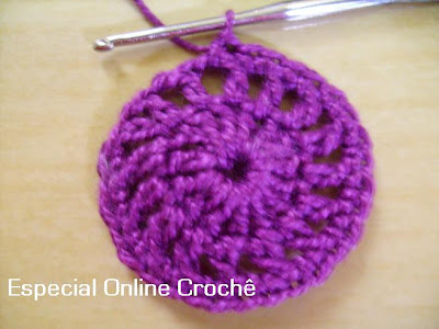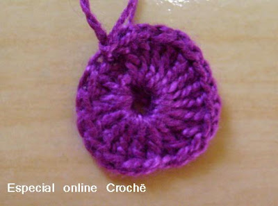 Para hacer las cadenas argolinha son 5 y cerrar con un punto bajo. Haga la zona de 20 puntos por encima.