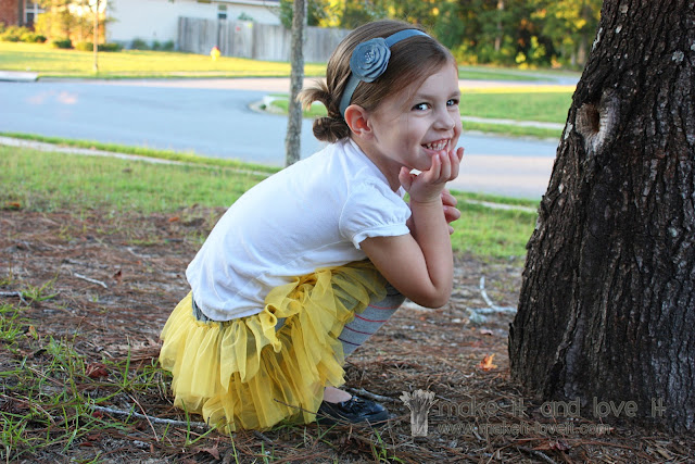 And today's project? One that has sat un-finished for a while... And let me tell you, I have had strips of yellow chiffon hanging around weird spots, waiting to be attached to this skirt. At one point, I even saw one of the strips wrapped all the way around my little girl's body. I guess someone appreciates my un-finished projects.