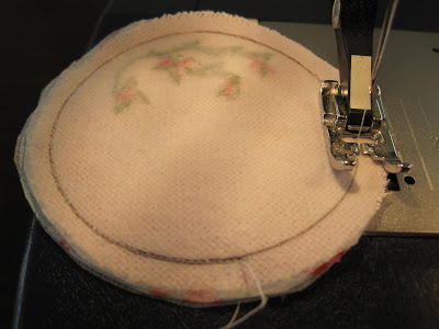 colocar o objeto circular no lado do papel termocolante ou entretela costurada