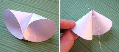 Aquí hay un adorno de Navidad que usted puede hacer con papeles de colores o páginas de la revista. No estoy seguro de cómo llamarlo. Una bola de embudo? Las instrucciones: 1. Corta 10 círculos de papel (de cualquier tamaño, siempre y cuando todos son iguales). Papel del texto de peso será más fácil trabajar que con cartulina. 2. Cortar cada círculo a lo largo del radio. 3. Ponga un pedazo pequeño de la doble vara de cinta en cada lado del corte cerca del borde del papel. 4. Da la vuelta al círculo por lo que el lado grabado se ha reducido, a continuación, tirar de cada aleta a través del círculo hacia usted y gire para formar un cono.Presione los extremos hacia abajo para asegurar grabado. Usted debe terminar con dos conos que se parecen vagamente a una galleta de la fortuna. Haga esto para cada uno de sus 10 círculos. 5. Cadena de los conos dobles junto con una aguja e hilo. Asegurarse de que están perfectamente recogidos en una bola y hacer un nudo. Use las puntas de salida de la rosca para hacer un lazo para colgar. He aquí un hecho de las páginas de la revista. Si te gusta la artesanía reciclada, darle un giro. Actualización: He probado una versión sentía !