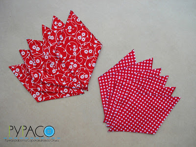 2) Cada tipo de tejido cortado a 6 rombos, recordando de nuevo desde el borde de alrededor de costura de 5 mm.