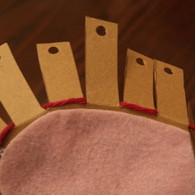 No conté cuántas veces me dio la vuelta, probablemente seis? Lo hice un poco suelto y esponjoso. Vas a seguir llenando los orificios hasta que usted no puede ver el cartón más, o hasta que la parte superior se ve tan esponjosas como desee, o hasta que te quedas sin hilo.