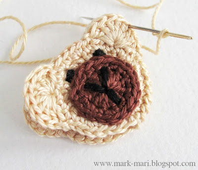Coser los círculos marrones a los "jefes". Usted puede usar una aguja normal e hilo para coser. Cosa puntadas perfectamente invisibles.