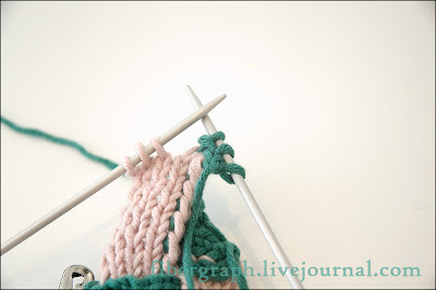 El lector atento se habrá dado cuenta de que el número final de triángulos se puede tejer de dos maneras: en el frente y en el lado equivocado de la trenza.El frente está precedida por respaldar una serie de rectángulos mal - la primera fila. Consideremos el primer caso. Más de lo mismo: los dos bucles en la aguja de tejer ... ... uno de ellos se traduce en la aguja izquierda y provyazyvayut y seguir a lo largo de asa de alambre. Convirtieron el trabajo. Se retiró el primer bucle, dejando el hilo en la parte delantera de la obra, el último frente de punto (bucle de cordón). volvió el trabajo. El primer bucle se retiró como un borde, tirando a cabo entre el primero y el segundo frente vyvyazali, los dos siguientes - color actual y contrastantes -. Juntos en el alambre . Inspeccione usted mismo, se volvió, se quitó primero, el hilo antes del trabajo, del revés, anverso Se volvió el trabajo. El primer bucle fue retirado de la parte frontal de tracción, frente a los siguientes dos bucles de alambre juntos. dio la vuelta. Se quitaron. Tejer del revés. Anverso. dio la vuelta. Cerraron un bucle. Front. . Los dos juntos en el alambre de la fila de atrás se obligan. gama facial: un bucle cerrado ... ... próximos dos bucles juntos en el alambre. cerrado el bucle.De acuerdo con la superficie lateral del rectángulo asociado previamente deberán encontrar cinco bucles ... ... y seguirá trabajando en el anterior ritmo: cada fila se iniciará con los lazos del borde y acabado provyazyvaniya dos bucles de cable juntos, y cada uno de respaldo - loop eliminado empezar y terminar la parte delantera. Bind para que todos los triángulos, menos el último - se encaja con la única diferencia de que en cada serie personal de los dos últimos bucles se provyazyvayut a lo largo de la parte frontal, formando así el borde. Vea cómo se ve: . Tarea 1 Pruebe a tejer la última fila de triángulos en el mallado. No hay loops adicionales:. Reclutar directa cuatro lazos en el lado del rectángulo, y el trabajo asociado anteriormente en los rectángulos puntilla principio, sin olvidar, sin embargo, para cerrar el ciclo . Tarea 2 Pruebe trenza tejida, en sustitución de la superficie frontal del mismo color en, por ejemplo, un patrón de perlas pequeñas. PS Una manita de peluche, te darás cuenta de que el uso de un alfiler no es necesariamente: sólo lo tranquilizan. Y puesto que no hay contactos, por lo tanto, todo el trabajo se puede realizar por cualquier radios. PPS Algunas fuentes, como se señaló anteriormente, no se recomienda vyvyazyvayut bucles marginales adicionales, otros cuestionan la necesidad de abordar el interior de tejido de punto y Gales. Así que teniendo en cuenta la secuencia de pasos - una de las técnicas posibles, que, sin embargo, creo que las más óptimas. ¿Preguntas?