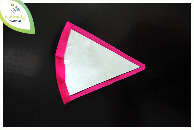 5. a) Tome una rodaja de géneros de punto para la cabeza. Recorrer una puntada hilván a una distancia de 5-6 mm del borde.