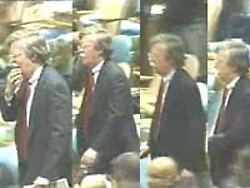 | (Video) Pipipiriguá contra el veto en la ONU Por: Aporrea / VTV Fecha de publicación: 20/10/06 | | | | (19/10/2006) Ante la pretensión de EEUU por evitar el ingreso de Venezuela como miembro no permanente al Consejo de Seguridad de las Naciones Unidas, y debido a la imposibilidad de romper con los votos duros que respaldan la candidatura venezolana, el imperio ha gastado suelas de zapatos y llamadas de celulares de su delegación para imponer su poder de veto en la Asamblea General, pese a que esta atribución no la puede aplicar en esta instancia.