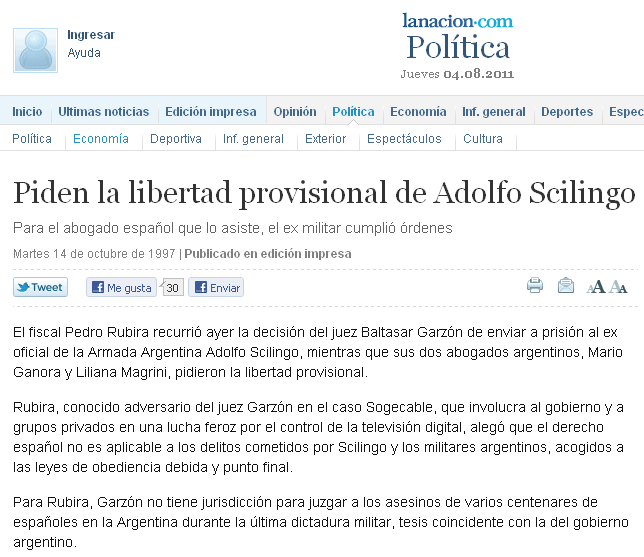 Así lo confirmó, Carlos Slepoy, abogado querellante en España en juicios contra represores argentinos. Mario Ganora, integrante de la ONG que acusó a Eugenio Zaffaroni, fue defensor de Adolfo Scilingo.