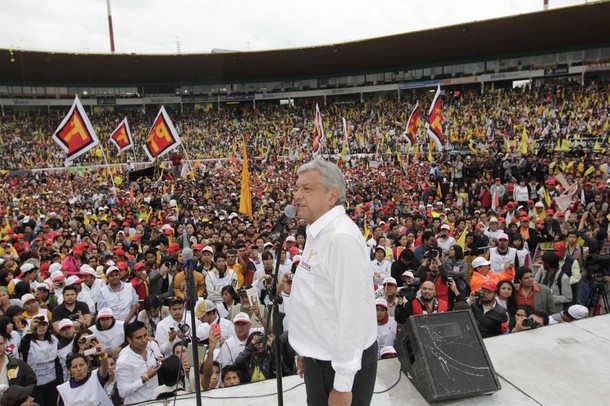 “Vamos a ganar. No es pose ni para animar, tenemos pruebas, hicimos un sondeo de fin de semana y vamos arriba más de tres puntos, por eso la desesperación de Enrique Peña”, dijo el abanderado de una coalición izquierdista que ha experimentado un contaste ascenso en los sondeos en los últimas semanas, frente al descenso de Peña Nieto que es aún presentado como el favorito por los principales conglomerados mediáticos aztecas.