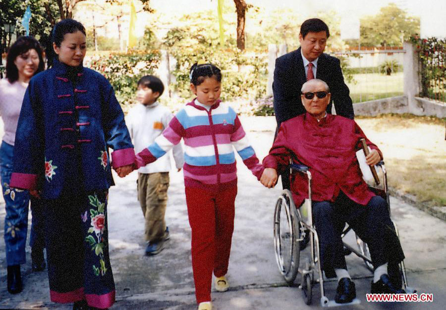 Imagen de archivo sin fechar de Xi Jinping (d-atrás), con su padre Xi Zhongxun (d-frente), su esposa Peng Liyuan (i-frente) y su hija (c), dando un paseo.