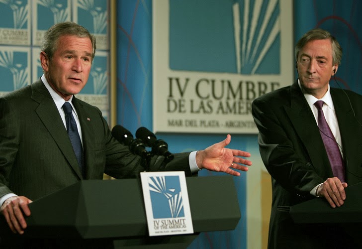 Al pronunciar el discurso de apertura de las sesiones de la Cumbre Néstor Kirchner se pronunció en contra de la pretensión de incorporar el tratamiento del ALCA en las deliberaciones de los presidentes, lo que provocó la insistencia de Canadá acompañado por el gobierno conservador mexicano presidido por Vicente Fox, el gobierno de Panamá (Martín Torrijos, para eterna traición al legado de su padre, Omar Torrijos, quien recuperó el Canal de Panamá de manos yankees) y, sibilinamente, por el presidente de Chile, Ricardo Lagos. Pero las intervenciones posteriores de Luiz Inacio “Lula” da Silva, Tabaré Vázquez y, sobre todo, de Hugo Chávez, liquidaron definitivamente ese proyecto y en la Declaración Final quedó claro, en negro sobre blanco, que no había acuerdo sobre el tema y que, por lo tanto, quedaba postergado indefinidamente.