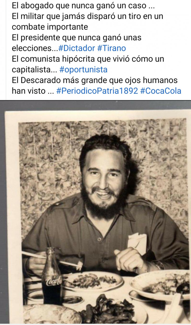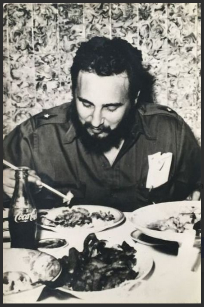 El GRAN Fidel  bajando el almuerzo con una Coca-Cola.