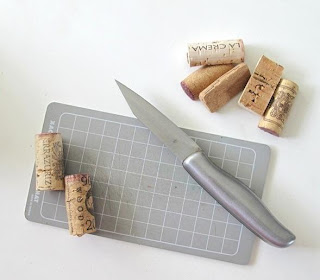 * Cortar por la mitad cada corcho.