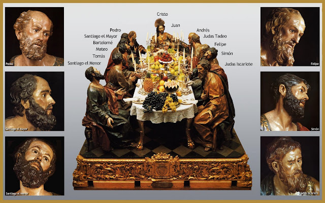 La Última Cena , es un sorprendente conjunto escultórico formado por trece figuras de tamaño natural, cuyos ingredientes son consustanciales al mundo barroco, de modo que lo imperecedero y lo efímero se funden haciendo que la misma obra aparezca distinta en cada instante, mostrando distintos valores plásticos según el momento, la luz y el lugar en que se contemple, en definitiva, poniendo de manifiesto la plenitud lograda por el escultor murciano.