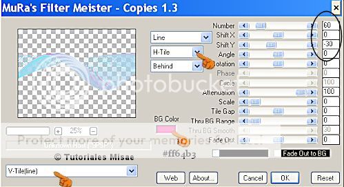 19- Efectos /Complementos/Mura´s Filters Meister/ Copies V-Tile (Line) con esta configuración.