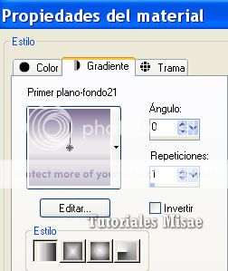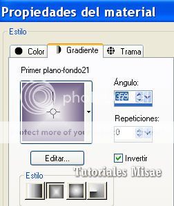 2- Hacemos un gradiente rectangular: ángulo: 359, repeticiones:0, invertir marcado y pintamos con él el paño.