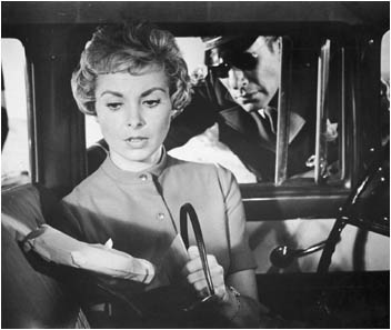 Momento en que el automóvil de Marion (Janet Leigh) es parado por un policía.