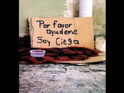 Había un ciega sentada en la calle, con una taza y un pedazo de cartón, escrito con tinta negra, que decía: "Por favor, ayúdenme, soy ciega"