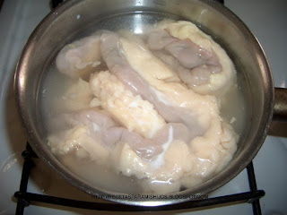 chinchulines a punto de ser hervidos en agua con un chorro de leche
