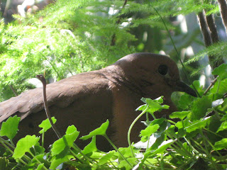 Elementos de construcción no le faltaban; ramillas de jacarandá, barro, hojas secas, y hasta los más usados en los últimos años: fibras del techo del cobertizo y otras del felpudo. Pero doña Tórtola no es la gran arquitecta. Habitualmente sus frágiles nidos instalados en lugares absurdos terminan en el suelo, y los huevitos estrellados.