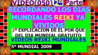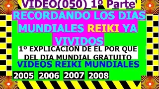 LOS PRIMEROS 8 VIDEOS RECORDANDOLOS ANTERIORES DIAS MUNDIALES. ESTOS TRES PRIMEROS TIENEN LA EXPLICACIÓN DE EL POR QUÉ DE EL POR QUÉ PARA QUÉ Y LA META POR LA QUE NACIÓN EN EL 2004 EL DIA MUNDIAL DEL REIKI GRATUITO