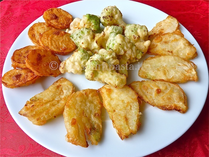 Scaldate l’olio nella padella a circa 170 °, immergetevi gli ingredienti friggendo poco per volta.