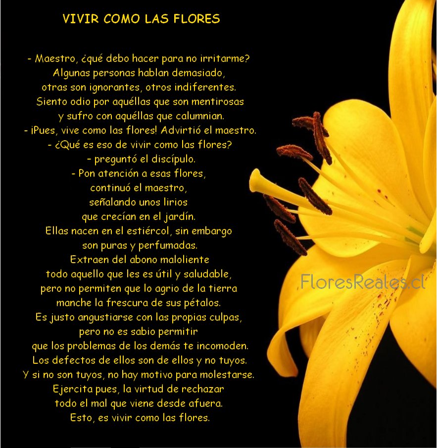 HANDY, MUY APRECIADO ESTE MENSAJE, VIVIR COMO LAS FLORES, GRACIAS AMIGA, POR ESTAR Y COMPARTIR, UN ABRAZO.
