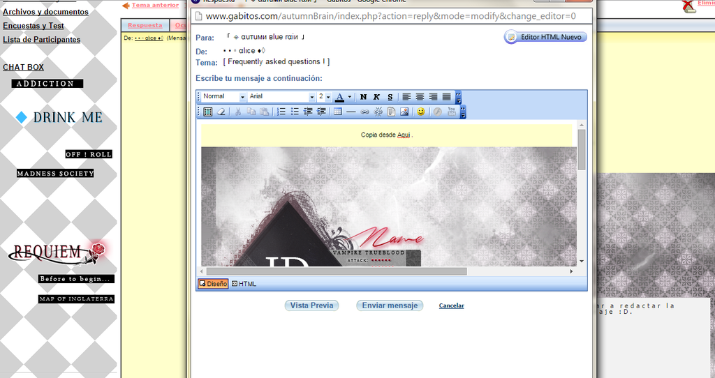 • Le explicare por imágenes como puede copiar de manera sencilla las tablas, diseños e inclusive la forma del cuadro de redacción para el momento en que empiece a rolear. Aqui voy !.