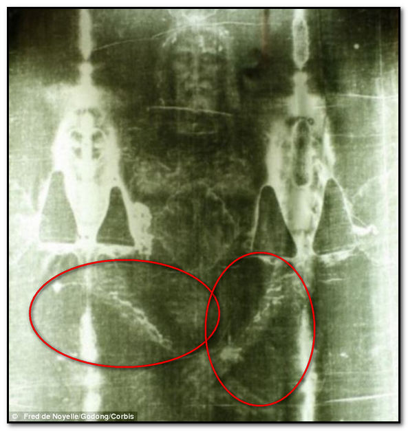 Explico: En la Sábana se demuestra de forma irrefutable que Jesús fue empalado, por la sencilla razón de que ¿cómo se explicaría que las regaderas de sangre de las muñecas producto por las heridas por los clavos, irían a llegar hacia los hombros? La respuesta es muy simple, porque Jesús no fue crucificado, sino más bien empalado; es decir, en el madero de tormento; dicho de otra forma, en el momento que Jesús fue clavado en el madero, cuando fue elevado ese poste vertical, obviamente la sangre que corría por sus brazos por las heridas de los clavos, es obvio y entendible que llegaran hacia sus hombros, tal como se demuestra en la SINDONE; de lo contrario sería ¡¡¡imposible!!! que fuera así ¿por qué razón? Por la sencilla razón, de que los brazos no estarían hacia arriba, sino más bien los brazos estarían extendidos como nos hacen creer esas películas como Jesús de Nazaret por Roberto Powell, y muchas otras más, bajo el poder del maligno, para engañar Apoc._12:9 porque esa es la misión de Satanás, y así ¡¡ojo!! la sangre por las heridas de las muñecas, por los clavos, no correría hacia los hombros, sino que caerían hacia el suelo y no dejaría marca alguna; por lo tanto tal como lo demuestra la Síndone, o más bien dicho la Sábana, en la cual envolvieron a Jesús, demuestra de forma irrefutable que Jesús no fue crucificado sino más bien dicho empalado, con sus brazos hacia arriba y no extendidos como falsamente nos han hecho creer la tradición Romana papal; por lo tanto, es otro indicio que la Sábana es irrefutable y que la escritura fue manipulada, excepto las traducciones israelitas mesiánicas, tal como leemos en la interlineal Griego-Español, que ellos han respetado el verdadero significado de la palabra STAUROS, que significa poste vertical y no cruz como falsamente nos han hecho creer aprox. 2.000 años, por el catolicismo Romano. Por lo tanto Jesús no fue crucificado sino más bien dicho empalado; es decir usando un poste vertical, tal como leemos en la interlineal Griego-Español que pegaré más adelante, con sus manos hacia arriba, de forma tal, que la sangre que brotaba por las heridas de sus muñecas producto por las heridas de los clavos y por la gravedad de la tierra, correrían hacia sus hombros, tal como se lee visualmente en la SINDONE DE CRISTO, (SÁBANA).