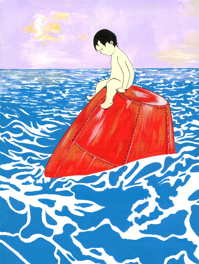 Cansado, pero con ganas de llegar al mar, el niño del agua no permitió que el miedo o los recuerdos del pasado le hicieran volverse atrás. Avanzó y avanzó, hasta que sobre el agua sólo había una espesa niebla y, más allá, una boya roja, zarandeada por el oleaje. El agua, hasta entonces dulce, comenzaba a tener un intenso gusto salado. Además, su cuerpo parecía ser más ligero, pudiendo dar saltos muy elevados fuera del agua. No tuvo ninguna duda, había llegado al ansiado mar.