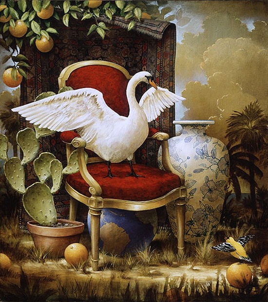 El motivo de estudio de Kevin Sloan es una profunda preocupación y respeto por nuestro planeta, y en particular por sus "habitantes silenciosos" -los animales y plantas que comparten este mundo con nosotros-. A través de la alegoría y el simbolismo expresa esta preocupación y, al mismo tiempo, recuerda a los espectadores las maravillas de este mundo extraordinario. Trata de crear un trabajo convincente, que pueda hablar sobre nuestro entorno tecnológico y moderno, con imágenes que al mismo tiempo representen el equilibrio natural, y su belleza extraña, inesperada y misteriosa. Su trabajo siempre se refiere a la naturaleza, pero también reconoce la sociedad contemporánea, y por lo tanto crea un diálogo entre el mundo moderno que hemos creado y el frágil entorno tranquilo y natural.