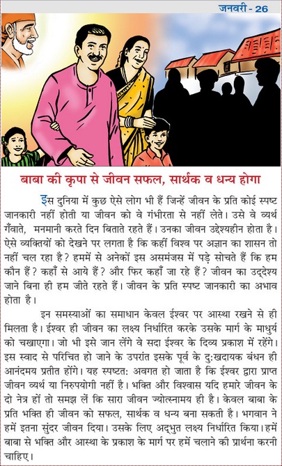 A complete surrender to God's will, would solve all our problems, reveals the purpose of life and shows the lovely path of realizing it. One who can understand this reality will eternally stay in His celestial light of wisdom. On tasting the nectar of His love, the earlier earthly bonds of hurdles would appear pleasant. The priceless life gifted to us would appear more purposeful. Life is delight if we look through the eyes of devotion and faith. The Omnipotent Baba blessed us with such a beautiful life, reveals us the goal of life and guides us in His Love-Light to reach Him and be with Him. Only our faith and love-devotion to Baba will make our lives meaningful and joyful. Let us pray to Baba to guide us in His Light of Grace.