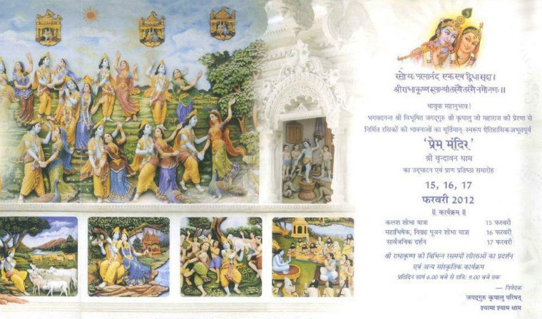 Prem Mandir, one of the largest and most beautiful Hindu temples in Vrindaban, India, is being inaugurated in a glorious 3-day ceremony on February 15-17, 2012.