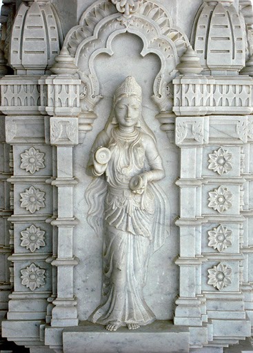 On fifty acres of land, the monument is surrounded with magnificent gardens and beautiful fountains. On the walls of this double story monument (122 x 195 ft.) the true theme of our scriptures, the Vedic science of creation, the world history and the unbroken continuity of Bhartiya scriptures for over 1.9 billion years is depicted. The beautiful deities of Radha Krishn and their leela songs are depicted in an exquisite manner.