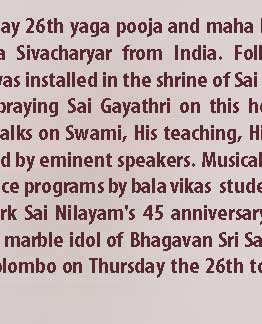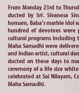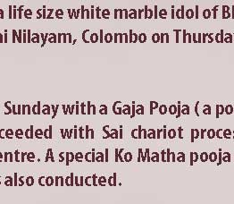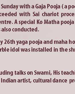 General: INSTALLATION OF WHITE MARBLE STATUE OF SATHYA SAI BABA
