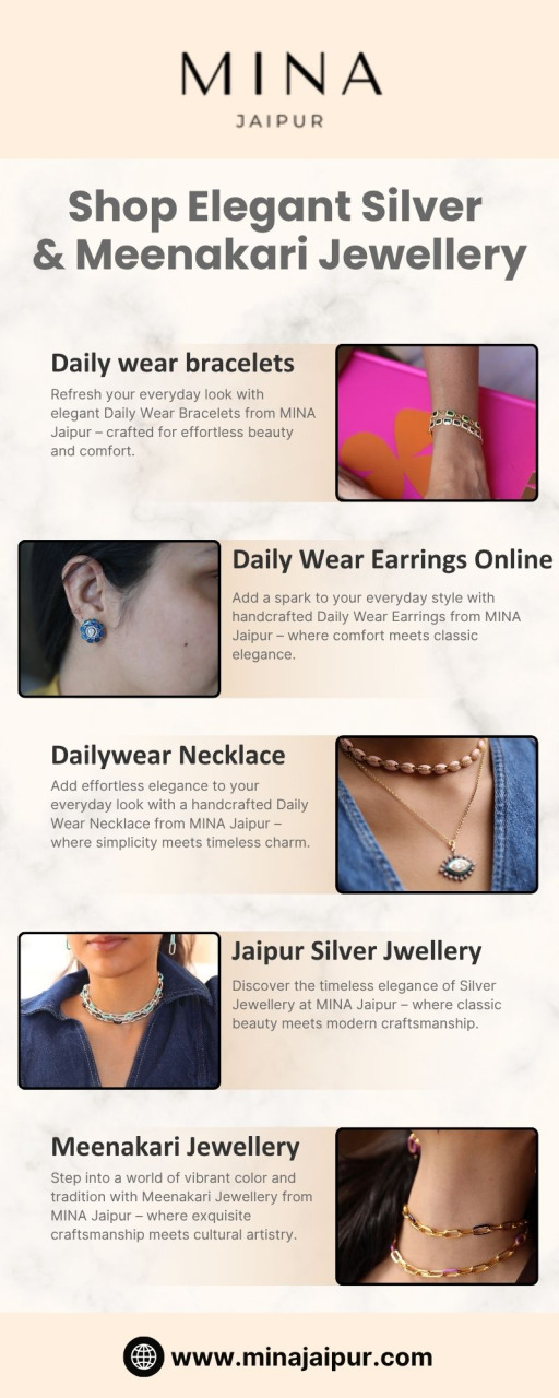 Discover a stunning collection of daily wear earrings online at MINA Jaipur. Our curated range includes minimalist, elegant, and lightweight designs perfect for everyday style. Whether you love studs, hoops, or delicate danglers, find your perfect pair crafted in premium silver and vibrant enamel work. Shop now to add a timeless sparkle to your look with MINA Jaipur’s handcrafted creations.