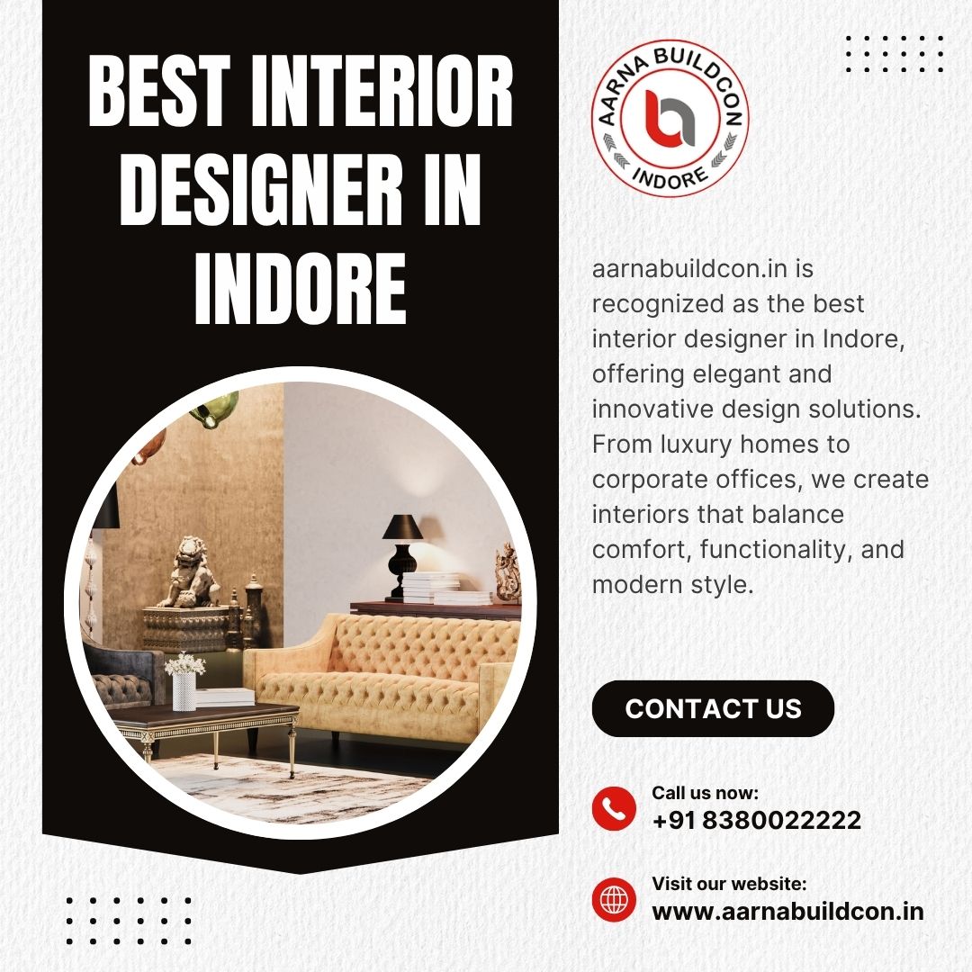 aarnabuildcon.in is recognized as the best interior designer in Indore, offering elegant and innovative design solutions. From luxury homes to corporate offices, we create interiors that balance comfort, functionality, and modern style. Our designs reflect your lifestyle while enhancing space utility. With expertise in materials, layouts, and execution, we ensure personalized interiors that inspire and impress at every level.