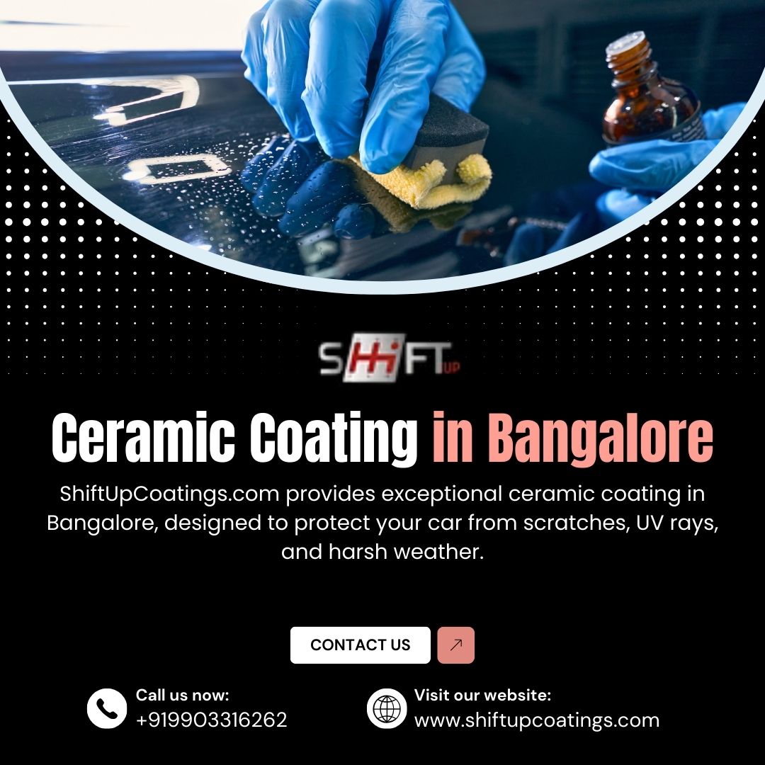 ShiftUpCoatings.com provides exceptional ceramic coating in Bangalore, designed to protect your car from scratches, UV rays, and harsh weather. Our high-quality products create a glossy, durable shield that keeps your vehicle looking new. With skilled technicians, advanced techniques, and long-lasting performance, we ensure your car receives maximum protection and incredible shine. Choose our trusted ceramic coating service for premium results in Bangalore.