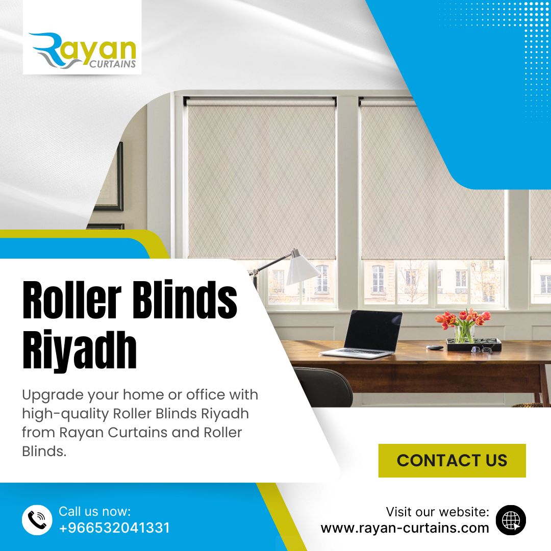 Upgrade your home or office with high-quality Roller Blinds Riyadh from Rayan Curtains and Roller Blinds. Our collection offers modern designs, durable materials, and customizable options to perfectly suit your space. Enjoy privacy, light control, and elegant interiors with our premium roller blinds. Experience hassle-free installation, exceptional quality, and stylish window treatments that enhance any room. Choose Rayan Curtains and Roller Blinds for the ultimate comfort and design.