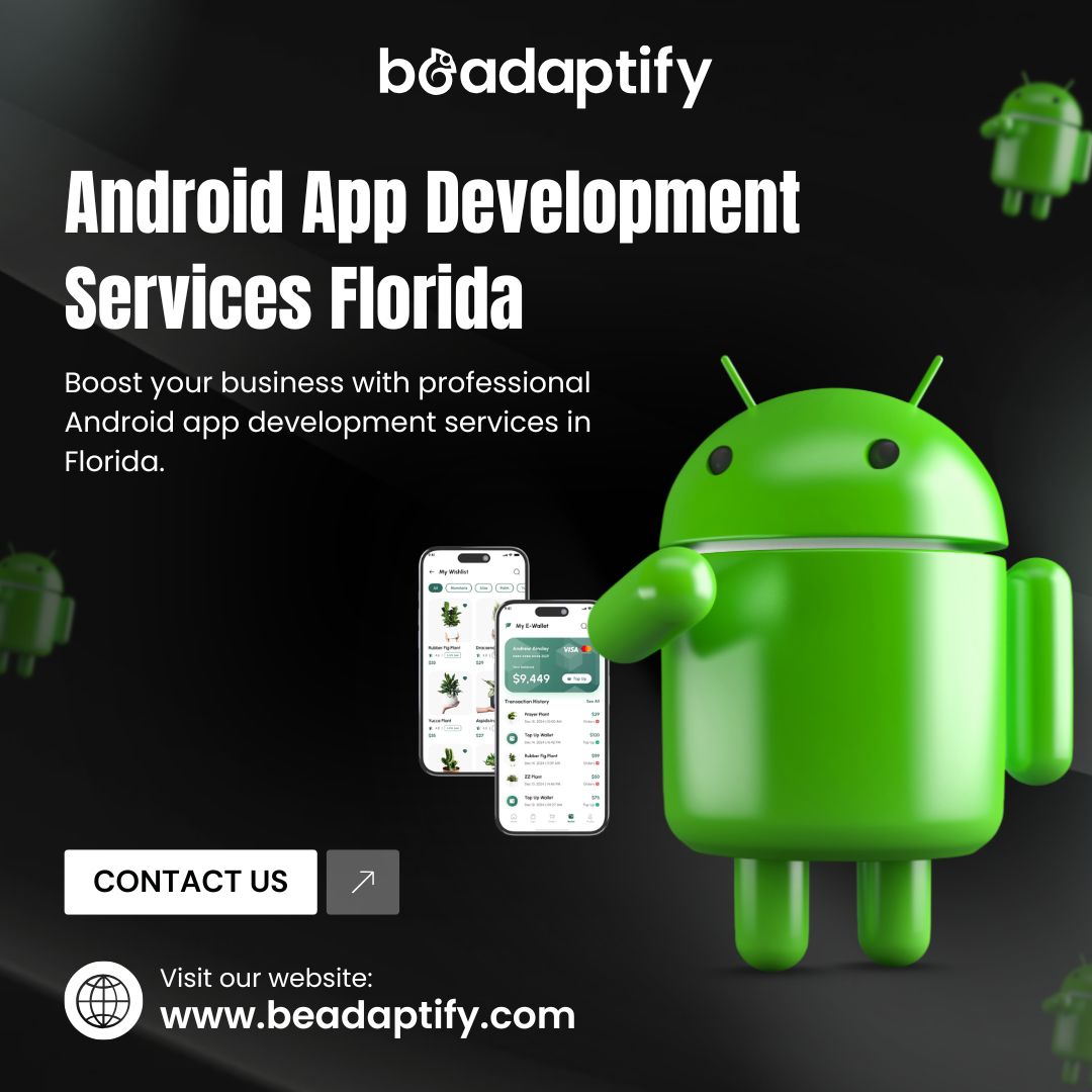 Boost your business with professional Android app development services in Florida. Our team delivers tailor-made apps that combine powerful technology and user-centric design. From native development to cross-platform optimization, we handle everything to ensure top performance. Work with Beadaptify Innovations for exceptional Android app solutions.