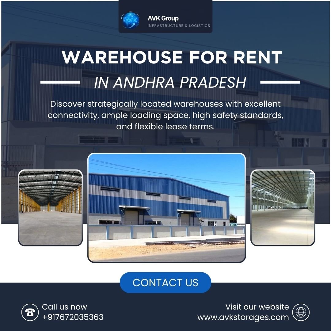 Looking for a reliable Warehouse for Rent in Andhra Pradesh that supports smooth storage, logistics, and distribution operations? Discover strategically located warehouses with excellent connectivity, ample loading space, high safety standards, and flexible lease terms. Ideal for manufacturers, distributors, and e-commerce businesses seeking scalable storage solutions across Andhra Pradesh. With AVK Godowns, you get professionally managed spaces designed for efficiency, compliance, and growth. Enquire now, schedule a site visit today, and secure the perfect warehouse before demand rises.