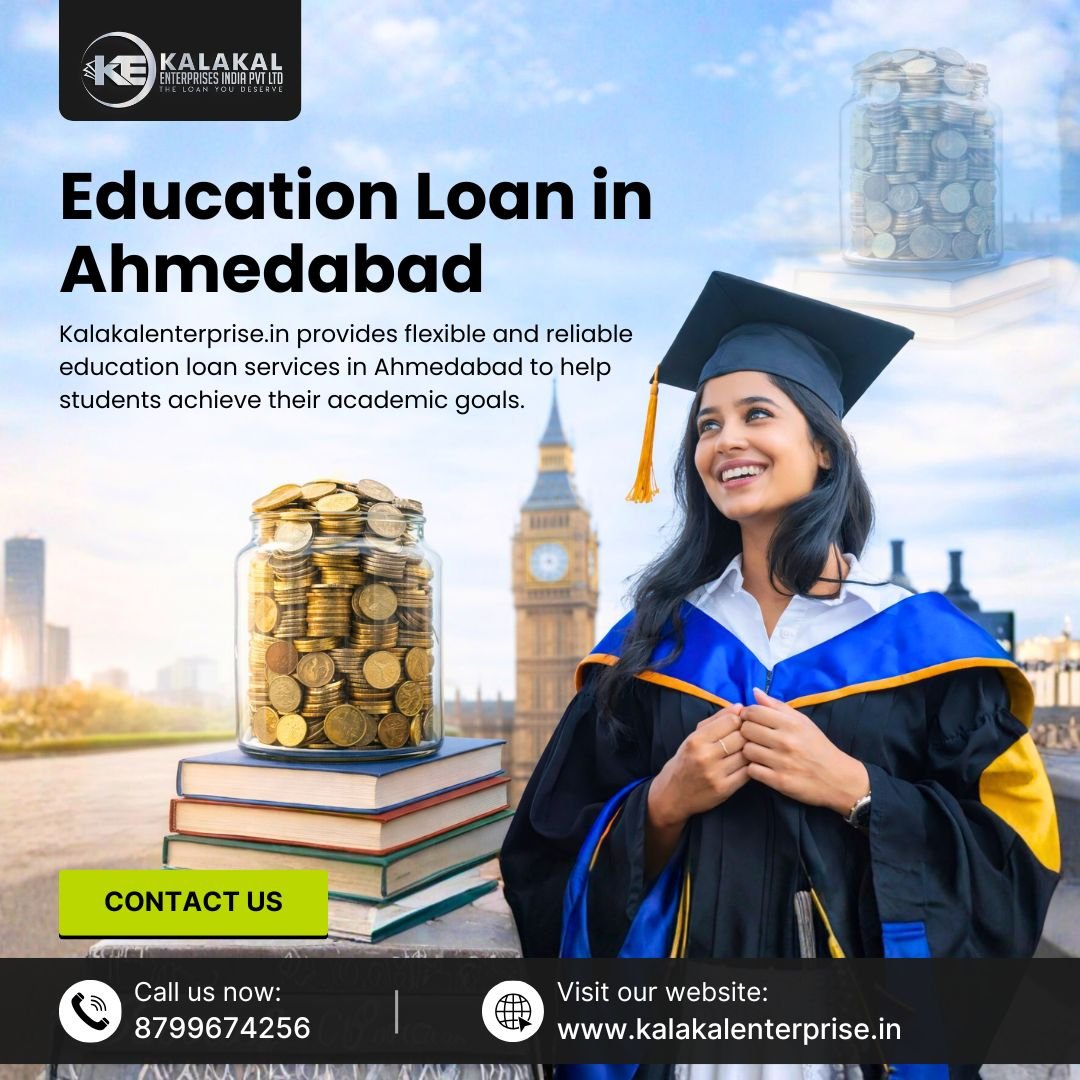 Kalakalenterprise.in provides flexible and reliable education loan services in Ahmedabad to help students achieve their academic goals. We assist in securing the right financing for higher studies in India or abroad with clear guidance and smooth processing. Our friendly team ensures transparent terms, manageable repayment options, and personalized support at every stage, making quality education accessible and worry-free for students and families.