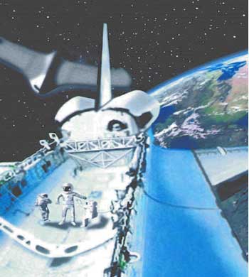 El extraterrestre estaba de pie en el contenedor de carga de combustible manteniendo una discusión con 2 astronautas de la NASA con traje espacial!