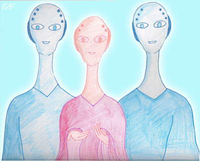 Me dijeron que venían de una galaxia cercana, pero que vivían aquí -lo mismo estaban de vacaciones- y que tenían bases en Venus y Júpiter. Insisten en que no puedo contar nada. Me hipnotizan y me dicen que no voy a recordar nada de lo que ví. Y siguen haciendo chistes. La situación es tan extraña que parece un sueño. Todo cómico y a la vez , aterrador.