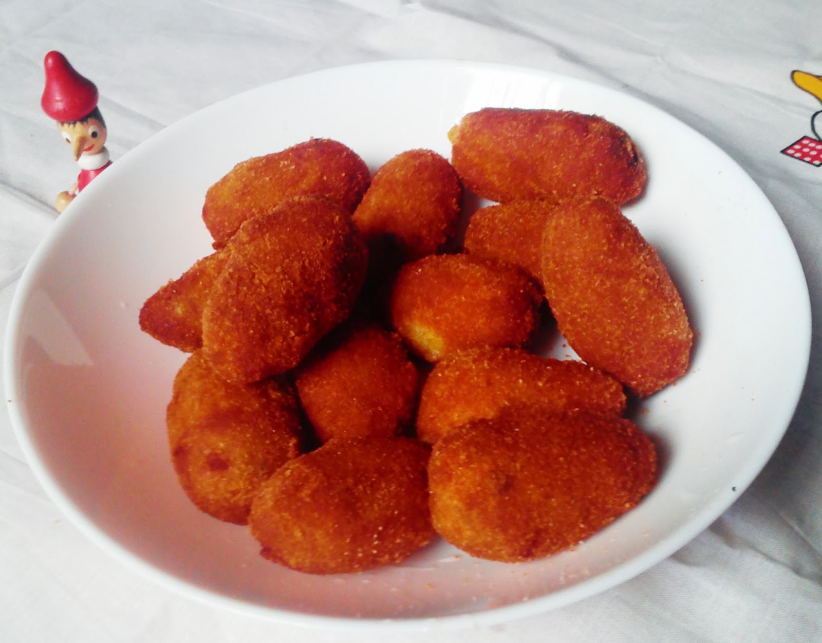 - La croqueta, como los niños, viene de Francia, de ahí su onomatpéyico nombre: croquette. En los Países Bajos son apreciadas las de patata, en Portugal las de bacalao.