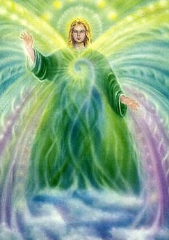 Los seres encargados de dirigir el rayo verde son, de arriba abajo: El arcángel Rafael, la arcangelina Madre María, Elohim Vista y Cristal y el maestro ascendido Hilarión.